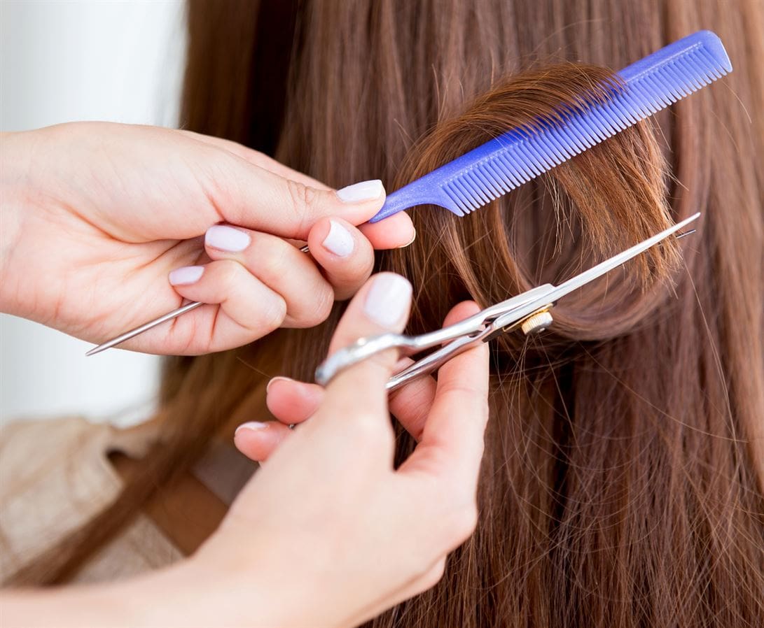Cutting split ends of hair at the beauty salon